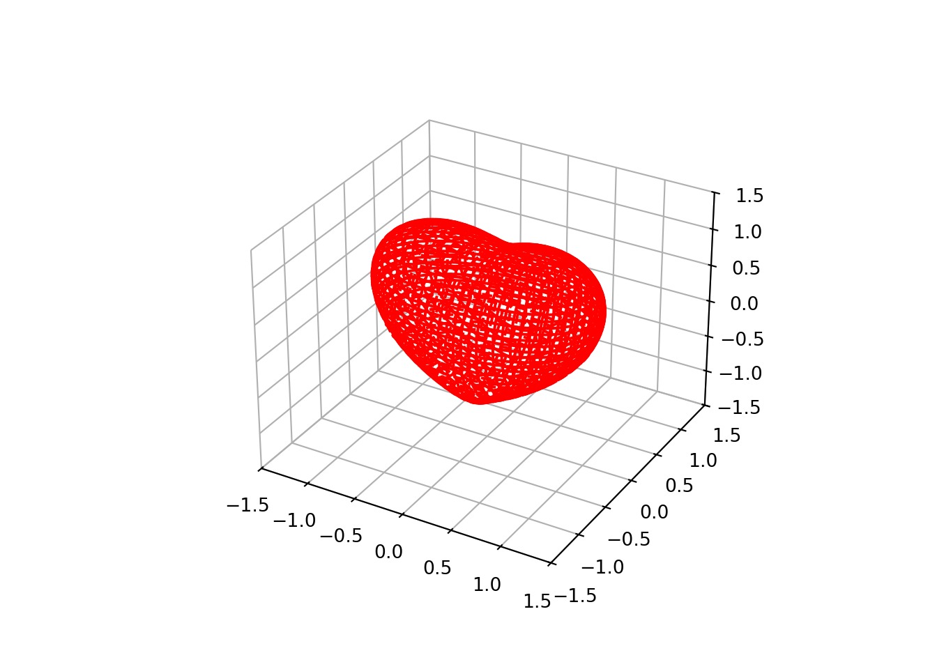 (x**2 + (9 / 4) * y**2 + z**2 - 1) ** 3 - x**2 * z**3 - (9 / 80) * y**2 * z**3