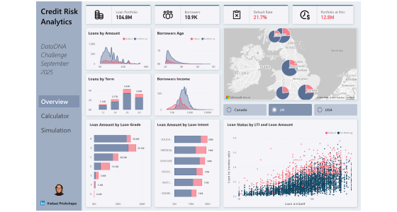 An interactive analytics dashboard combining a borrower-level credit risk calculator with portfolio-level simulation.