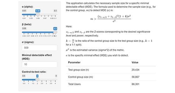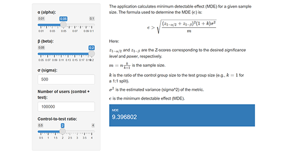 A lightweight interactive application for planning A/B tests by calculating the minimum detectable effect (MDE).