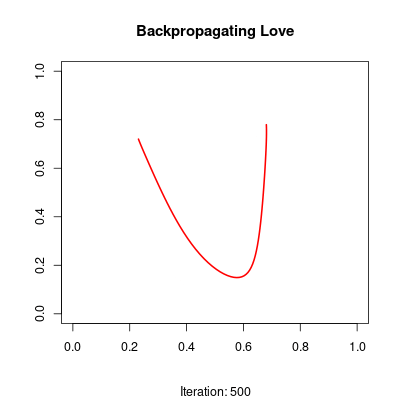 For each iteration of the training loop, the network updates its parameters to minimize the distance between the predicted coordinates (\(a^{(3)}\)) and the target heart curve coordinates (\(y\)).